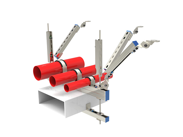 抗震支吊架核心功作用是支撐各種管道、橋架等機電管線與設備,為其提供抗震支撐作用。根據《建筑機電工程抗震設計規范》GB50981-2014,其主要概念為:和建筑結構體密切聯系,將地震力作為核心荷載的抗震設備支撐系統。